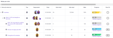 Pensando nisso, a impulse up criou o módulo de metas e OKRs para que você possa cadastrar seus indicadores e acompanhá-los de forma rotineira e com maior facilidade.