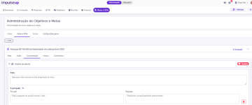Com essa finalidade, a impulse up desenvolveu um segmento especializado para essa análise de desvios dentro do nosso módulo de Metas e OKRs. Esta funcionalidade permite que a investigação da causa raiz e as intervenções necessárias sejam gerenciadas diretamente na plataforma, mantendo-se acessíveis aos administradores e facilitando a gestão do conhecimento.